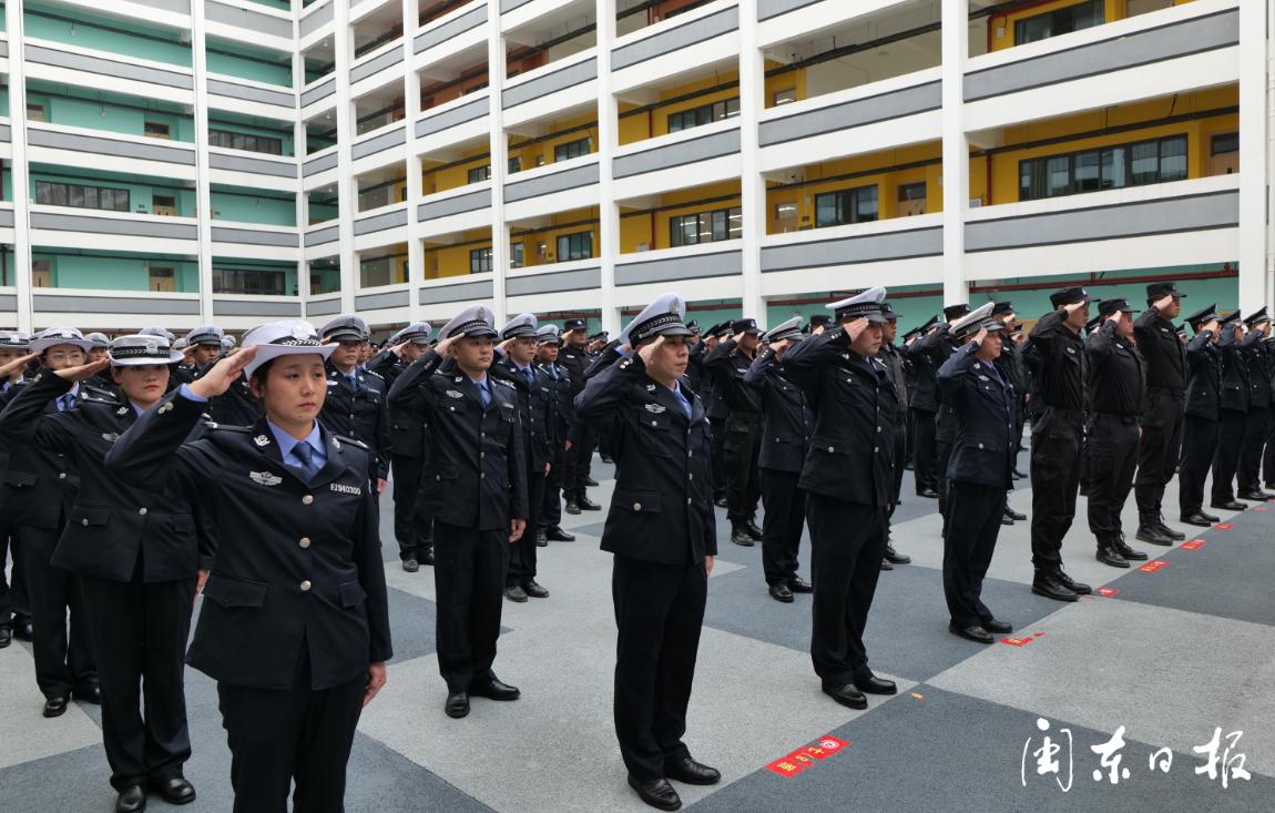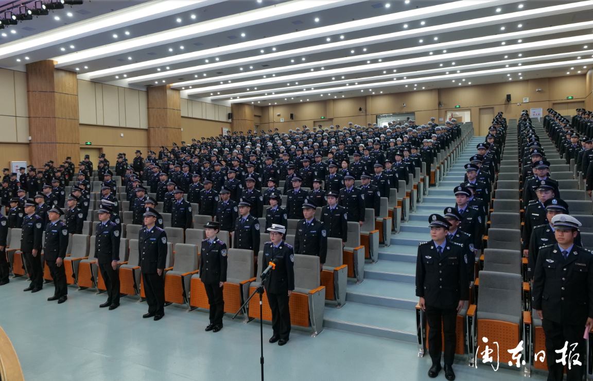 12月17日下午,在霞浦县公安局警务辅助人员首次层级评定换装授衔仪式上,来自霞浦县公安局局属各单位的304名警务辅助人员,举起右手庄严宣誓。