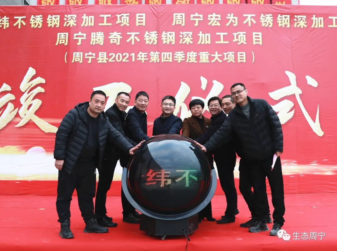 据了解,周宁金纬不锈钢深加工项目固投8000万元,达产后年产不锈钢产品3万吨,产值约4.5亿元带动就业130人;周宁宏为不锈钢深加工项目总投资5000万元,达产后年产不锈钢产品1.2万吨,产值约2.5亿元,带动就业100人;周宁腾奇不锈钢深加工项目固投3500万元,达产后年产不锈钢产品6000吨,产值约2.7亿元,带动就业100人。