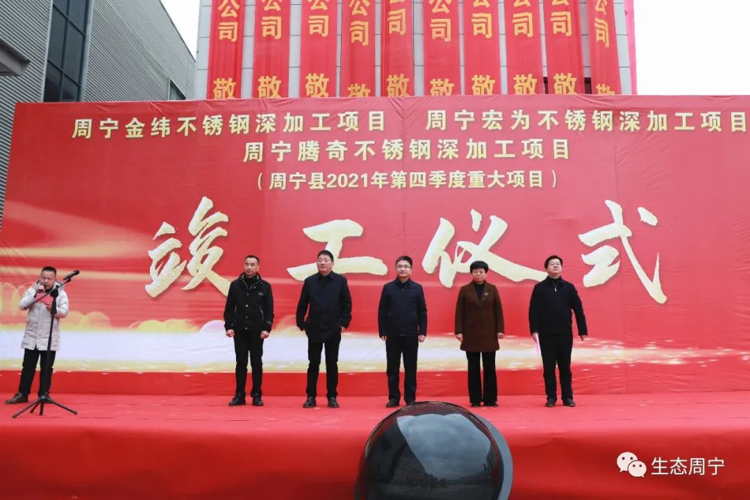 当天,还举行第四季度重大项目开竣工活动。周宁县领导袁华军、陈文卿、邹渊、李旱雨、孙永全参加相关活动。竣工项目为周宁县不锈钢深加工产业园项目、周宁金纬不锈钢深加工项目、周宁宏为不锈钢深加工项目、周宁腾奇不锈钢深加工项目。