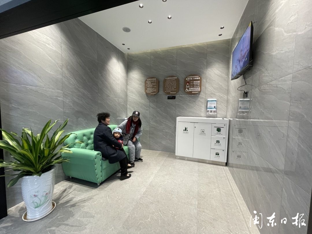 记者在休息室内,遇见带孩子休息的群众,该群众告诉记者:“外头如果没写厕所两字,还真不知道这是公厕,内部环境非常好,带孩子玩累了,在这里休息,没有一点异味,希望多建几个这样的厕所,非常便民。”