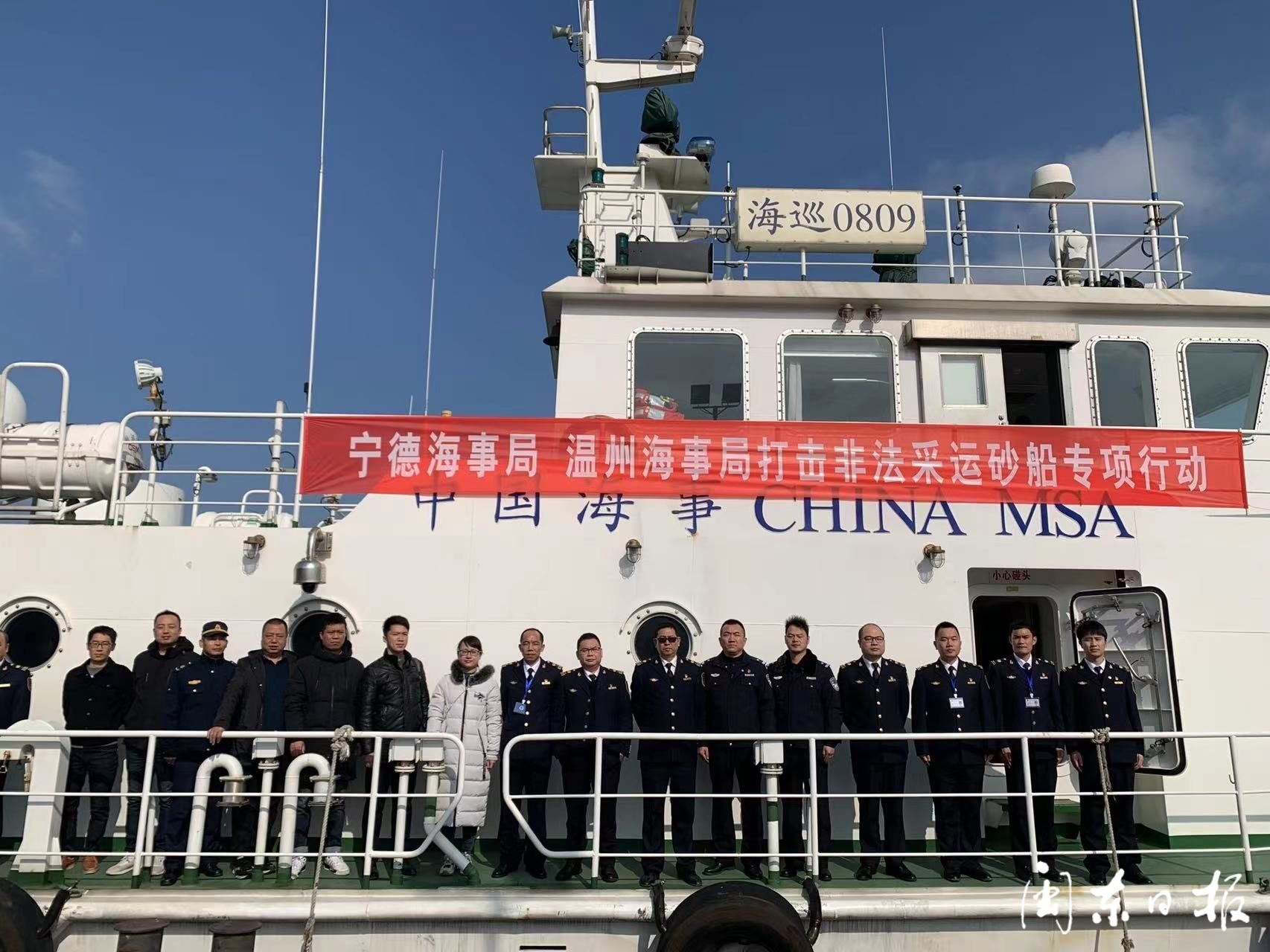 1月11日,宁德海事局联合温州海事局、温州市自然资源和规划局、温州市交通运输局、宁德市海防支队等部门,开展打击非法采运砂船专项行动暨2022年春运前联合巡航行动,为岁末年初水上交通安全保驾护航。