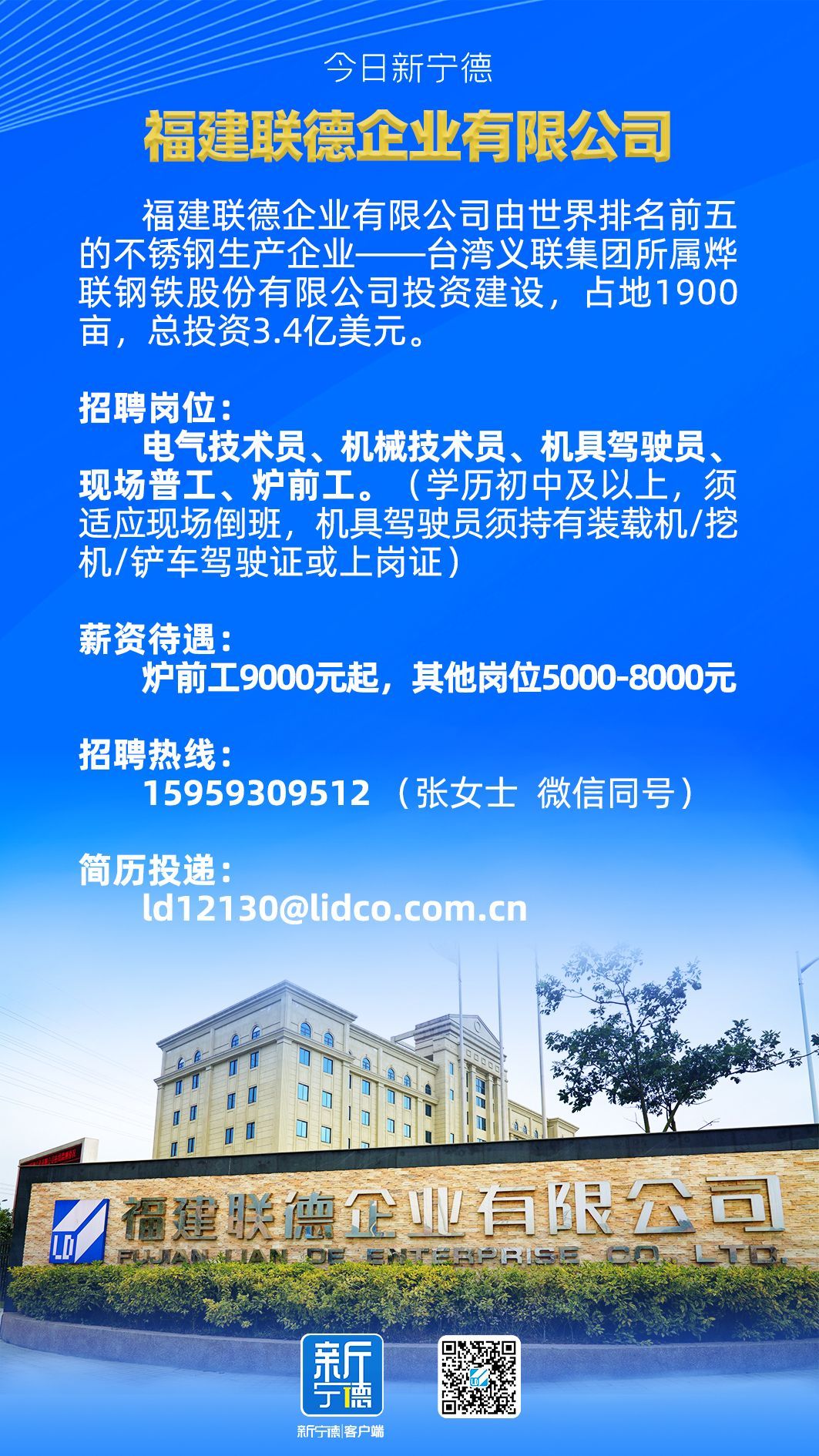 宁德招聘|福建联德企业有限公司 2022-02-14 11:50 0 声明:以上信息为企业提供,并由相关企业负责解释。本平台只负责信息发布,不承担任何连带责任。 来源:闽东日报·新宁德客户端 编辑:陈娥