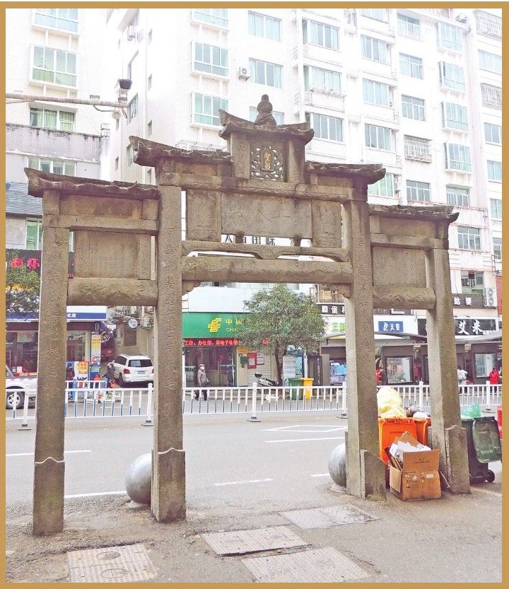 坊前的文化路斩断花亭街巷,坊后水泥路面把铺着溪石的路面尘封,深埋于未来的考古土层。石牌坊就骑在新的弄口,石牌坊下面时常放着两三个垃圾桶,俨然成了村子的门楼,人们不再过多地去关注它。骑在新弄口的石牌坊是一座百岁坊,叫“昇平人瑞”坊,它算是幸运的,在城心地带找到立锥之地,而另一座石牌坊是座贞节坊,叫“玉星祥”坊不知被迁往何处。两座石牌坊原本是立在花亭街尾,一座骑在官道上,另一座立在官道边。如今的摆放,算是乱了规矩。