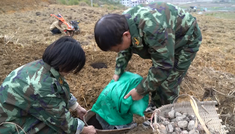 连日来,在虎贝镇新亭村,由蕉城区农业农村局认领认筹的12亩抛荒地在加紧平整中,现场的农业干部分工协作,挥动锄头,挖穴、培土、施肥,依序种下马铃薯等粮食作物。