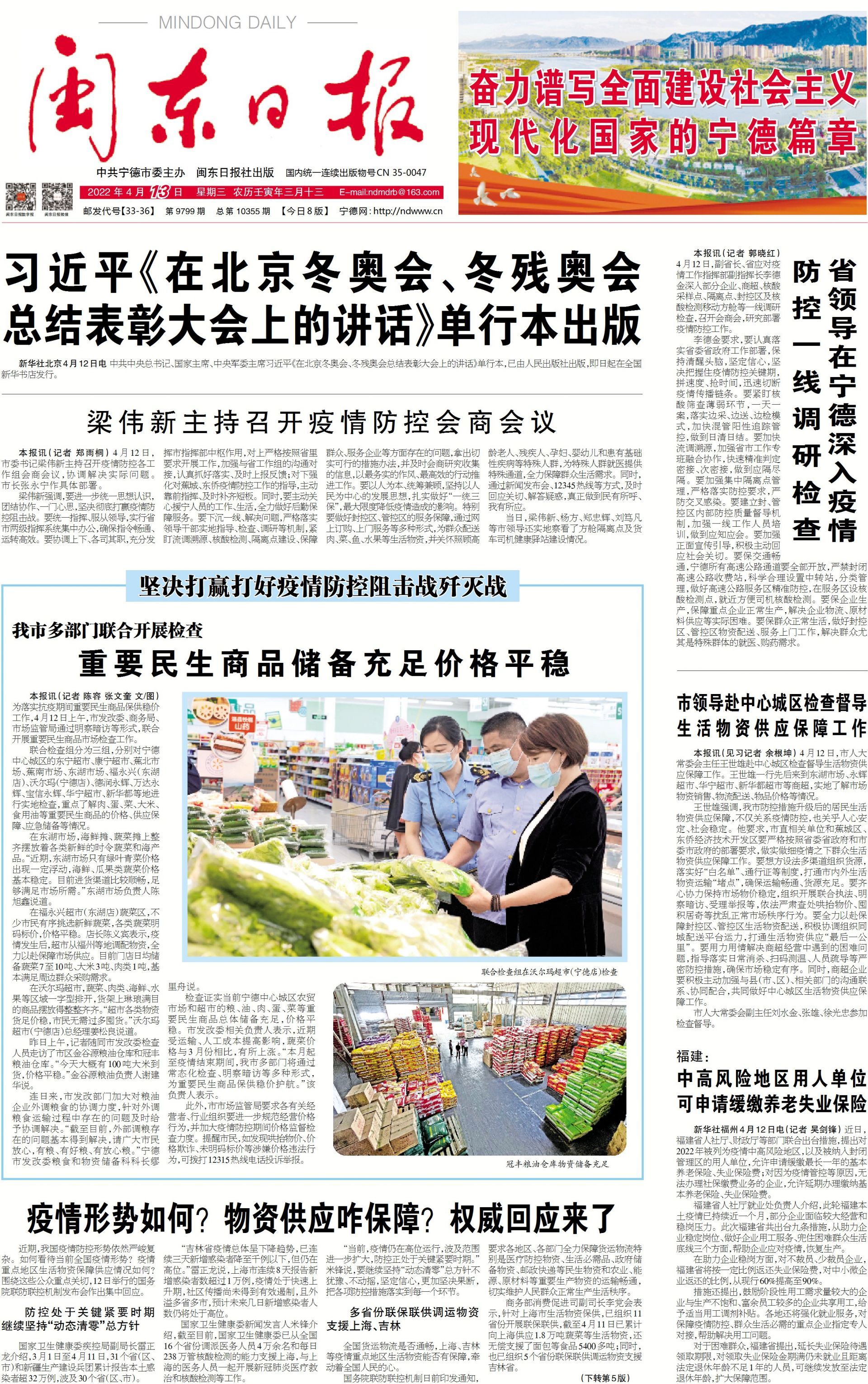 4月12日,副省长、省应对疫情工作指挥部副指挥长李德金深入部分企业、商超、核酸采样点、隔离点、封控区及核酸检测移动方舱等一线调研检查,召开会商会,研究部署疫情防控工作。