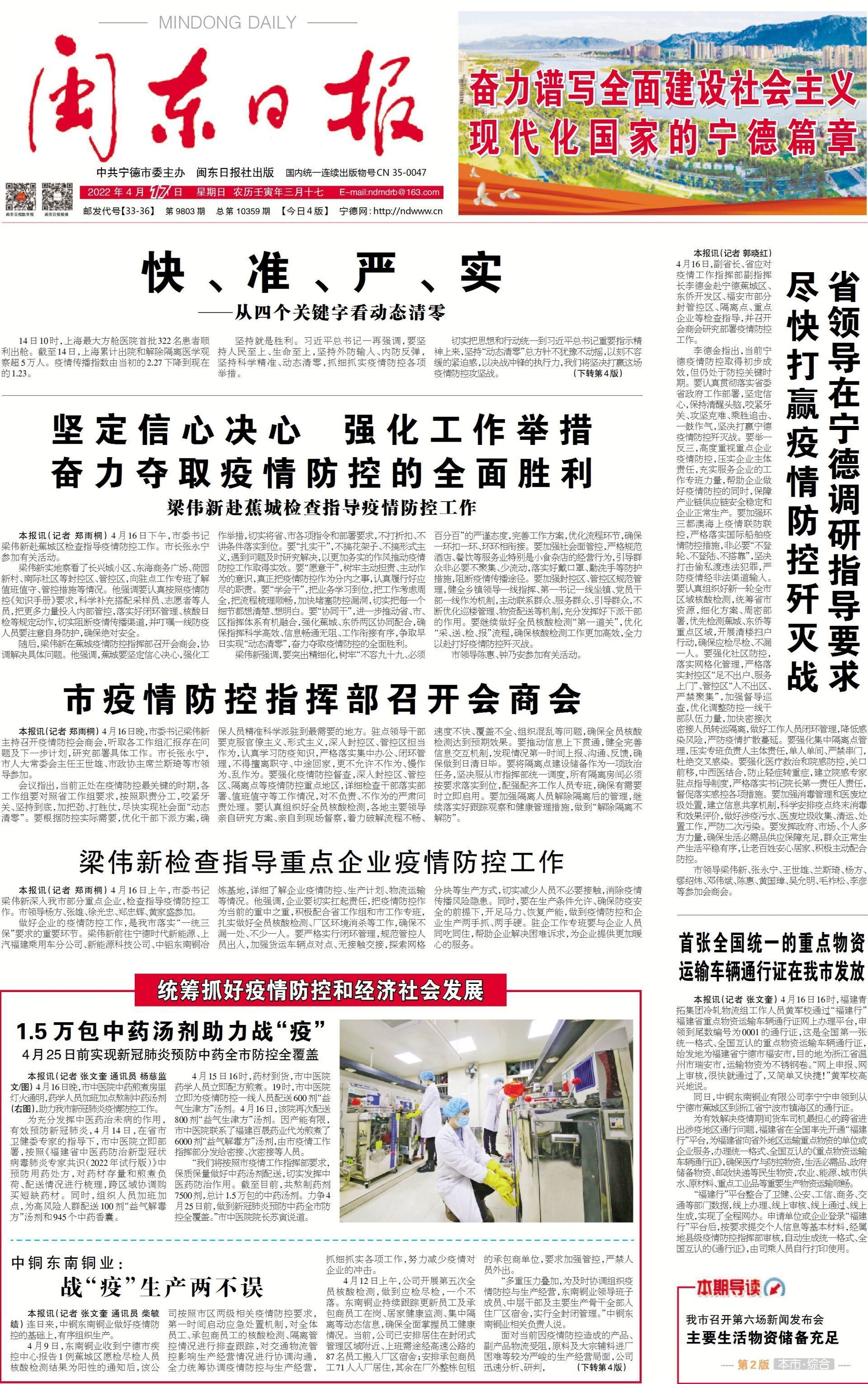 4月16日下午,市委书记梁伟新赴蕉城区检查指导疫情防控工作。市长张永宁参加有关活动。