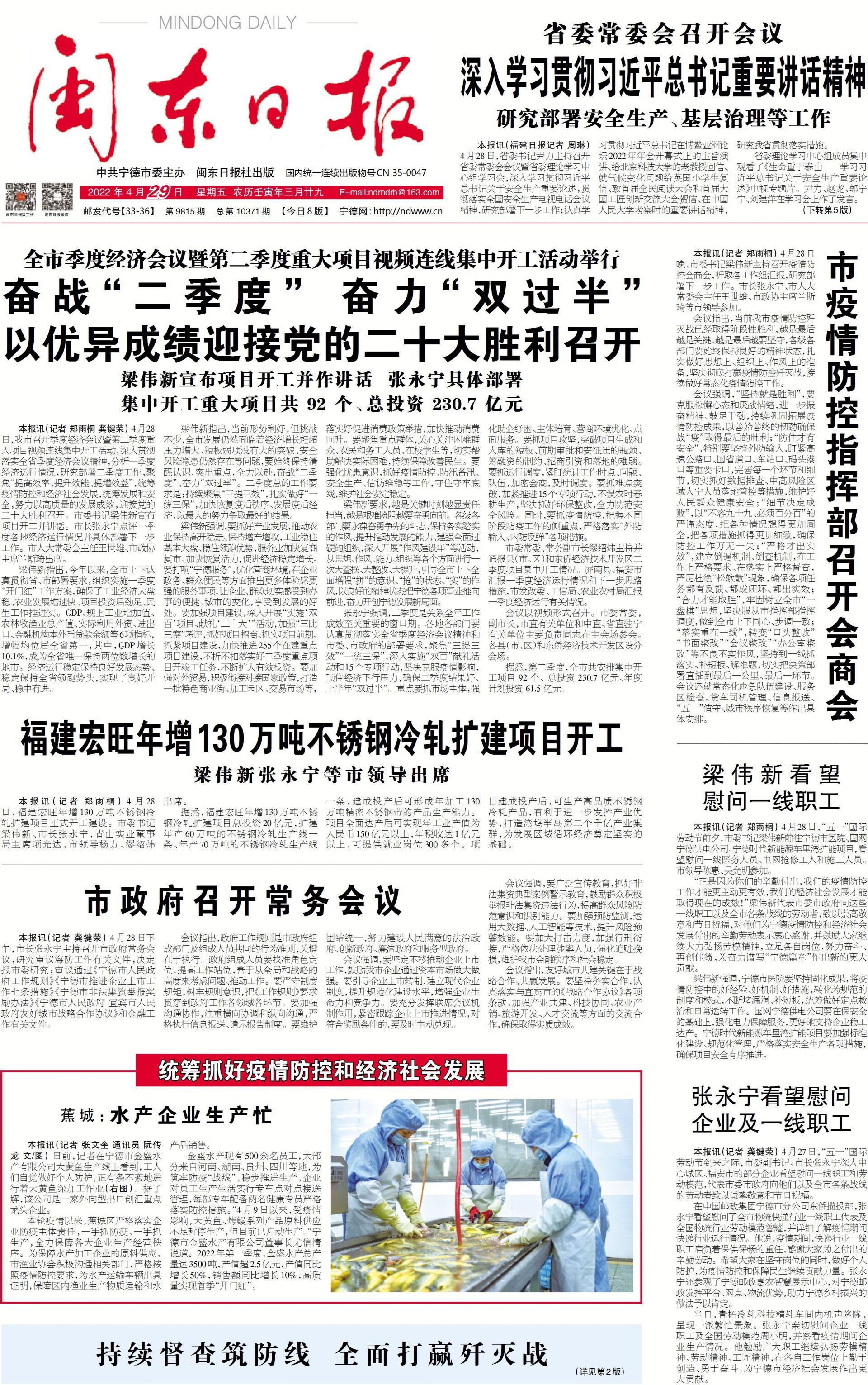 4月28日,福建宏旺年增130万吨不锈钢冷轧扩建项目正式开工建设。市委书记梁伟新、市长张永宁,青山实业董事局主席项光达,市领导杨方出席。