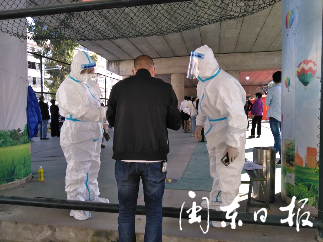 4月11日,市政府办公室党员志愿者下沉蕉南荷园社区协助核酸采样工作