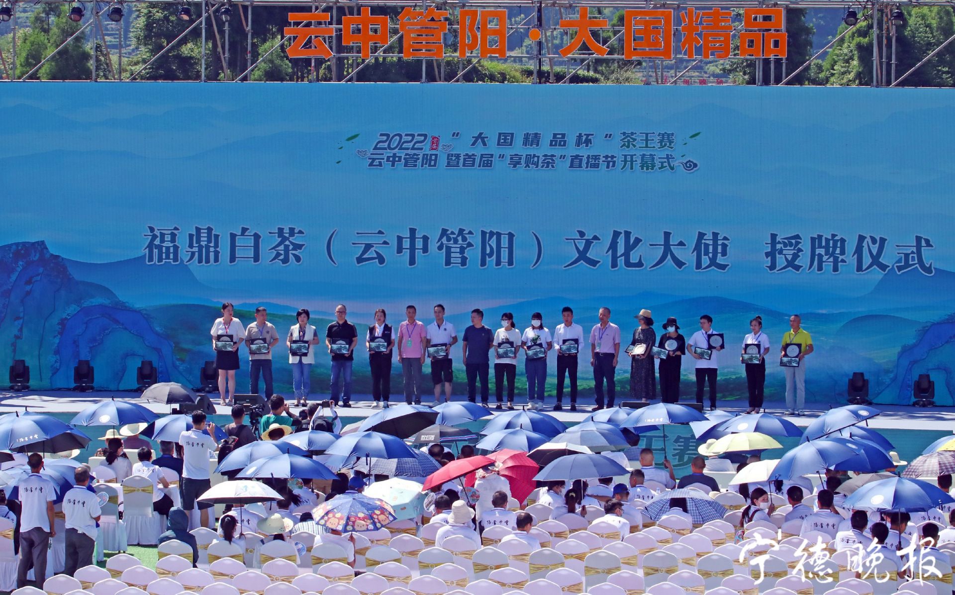 青山秀水育佳茗,茶香诗韵聚浓情…… 8月6日至7日,云中管阳乡村振兴论坛系列活动在福鼎市管阳镇圆满举行。本次活动涵盖了2022云中管阳首届“大国精品杯”茶王赛、首届“享购茶”直播节开幕式、“链”上共舞绿色共赢2022主题论坛、“大国精品”颁奖盛典等精彩纷呈的主题活动,来自全国各地茶界专家学者、茶企茶商、新闻媒体等百余人共同参与本次活动。
