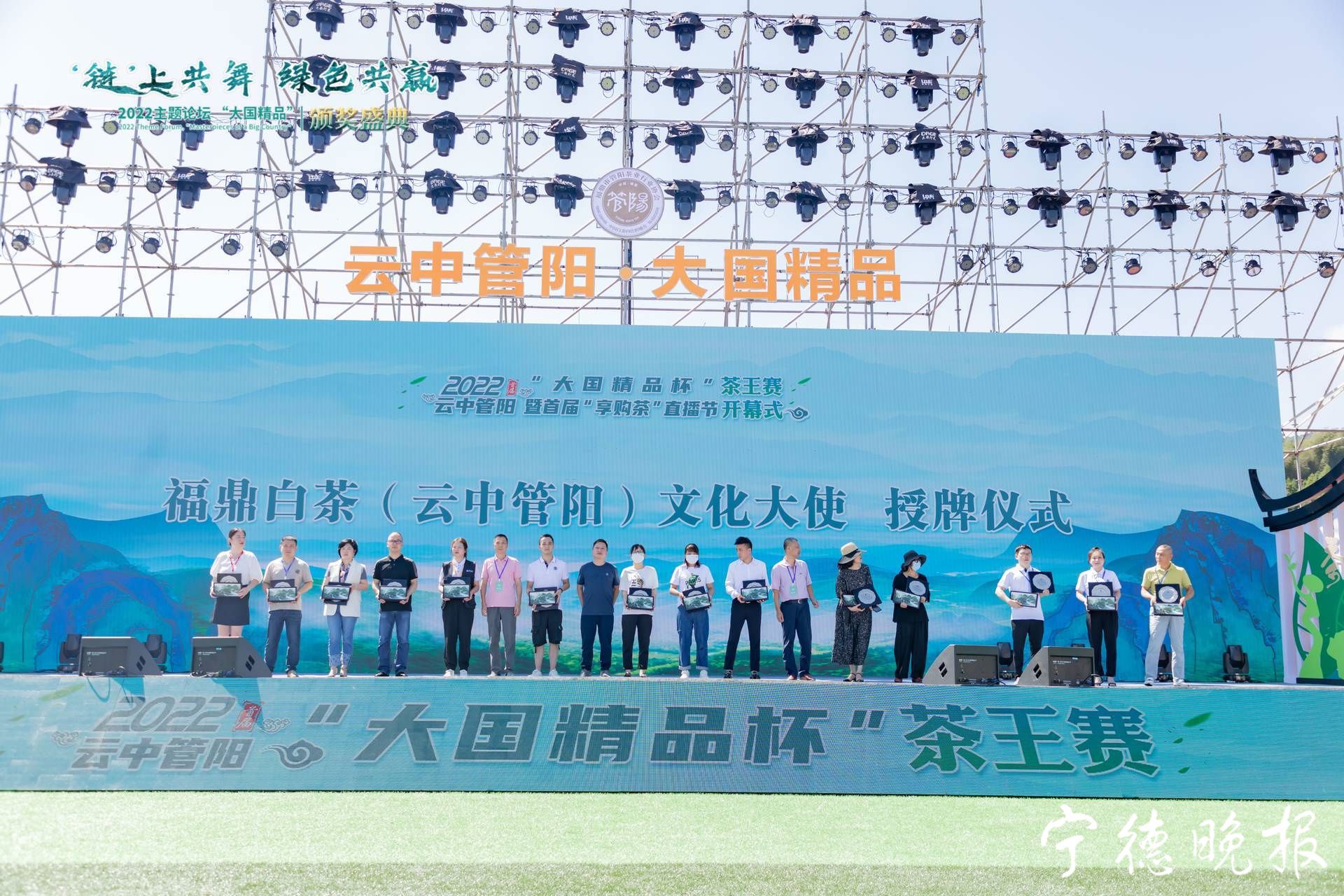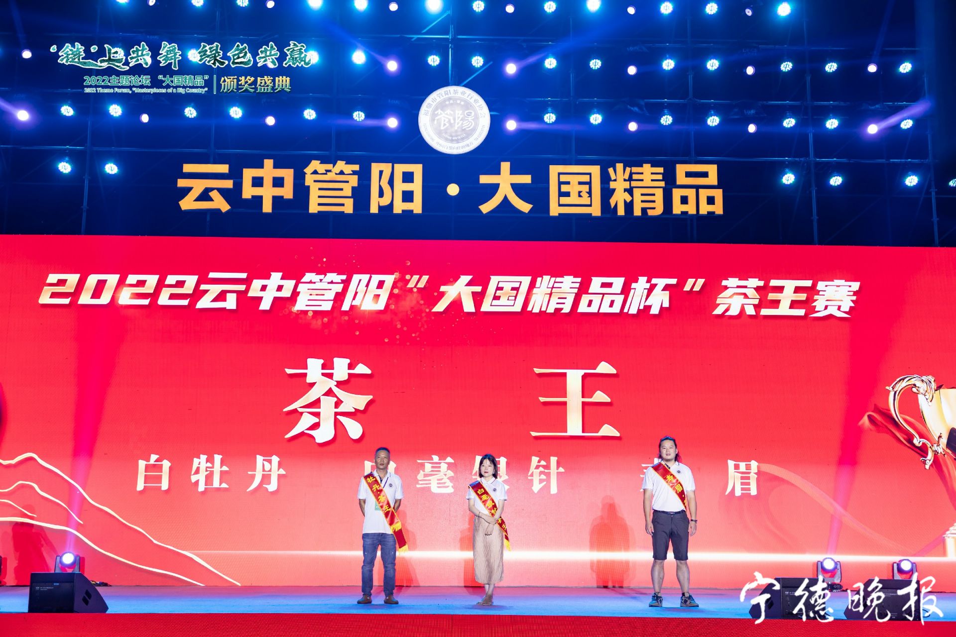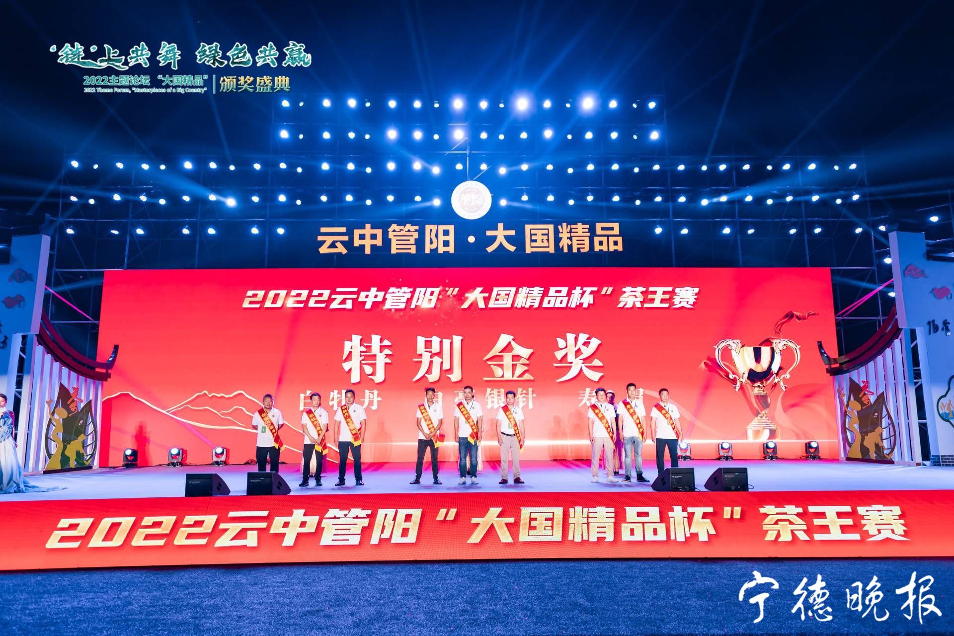 当晚,“链”上共舞绿色共赢2022主题论坛、“大国精品”颁奖盛典为2022云中管阳首届“大国精品杯”茶王赛的获奖者进行了颁奖。其中,福建大栖阳茶产业有限公司送样的白毫银针脱颖而出,摘下了白毫银针类茶王桂冠,福建强农农业发展有限公司送样的白牡丹夺得了白牡丹类茶王,福鼎国南茶业有限公司送样的寿眉夺得寿眉类茶王。