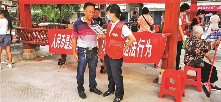 线上通过全员转发微信链接提高阅读量,营业大厅上电视播放原创宣传视频、网点门头LED滚动播放宣传标语等进行金融知识宣传。线下结合走街串巷、走村入户等方式,通过现场讲解、答疑解惑、发放宣传折页等方式普及金融知识、防范非法金融活动。现场活动氛围良好,群众积极翻阅相关折页,进一步提升社会公众对金融知识的认识程度和提高风险防范意识。