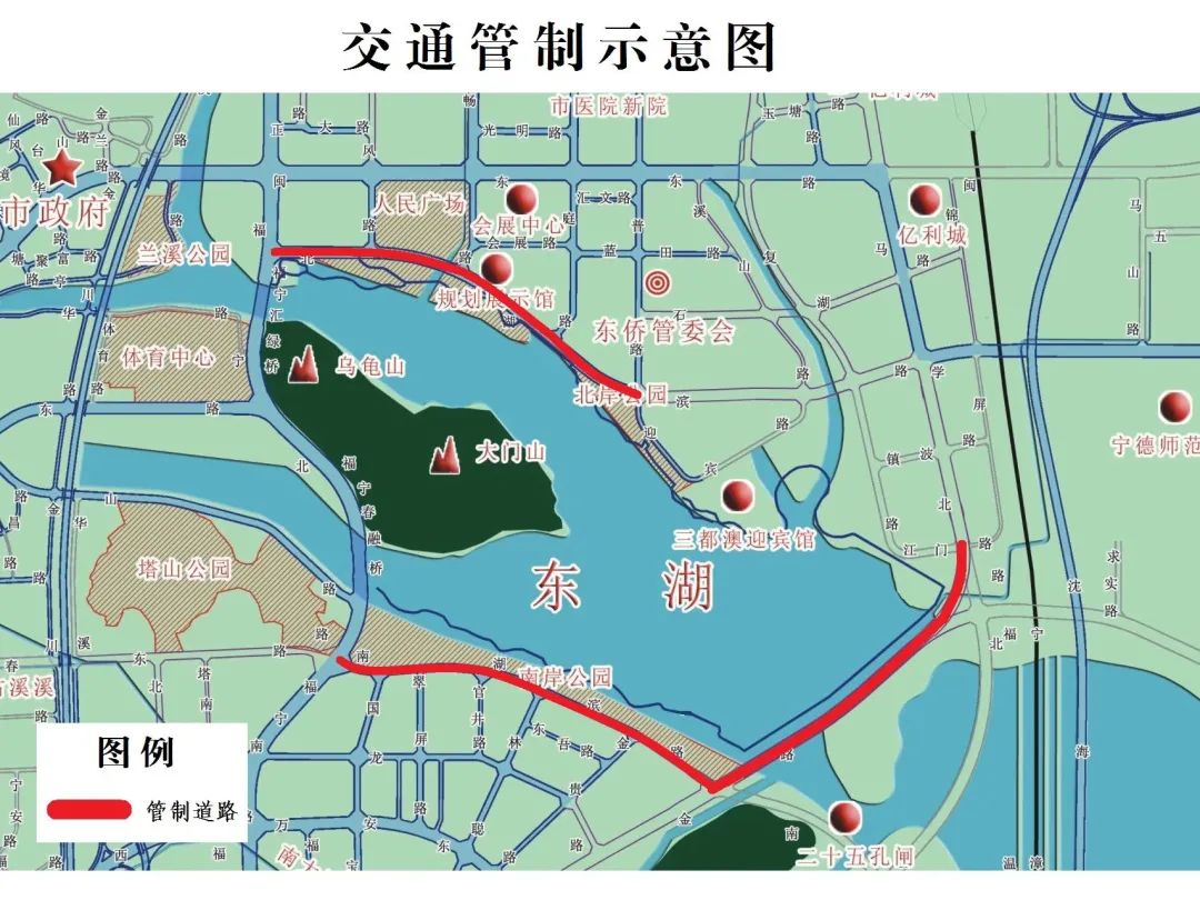 汇演活动期间,公安机关交通管理部门将对南湖滨路全线、北湖滨路全线实行交通管制,请广大市民务必提前关注交通管制信息,合理选择出行方式和时间,尽量选择绿色出行方式。